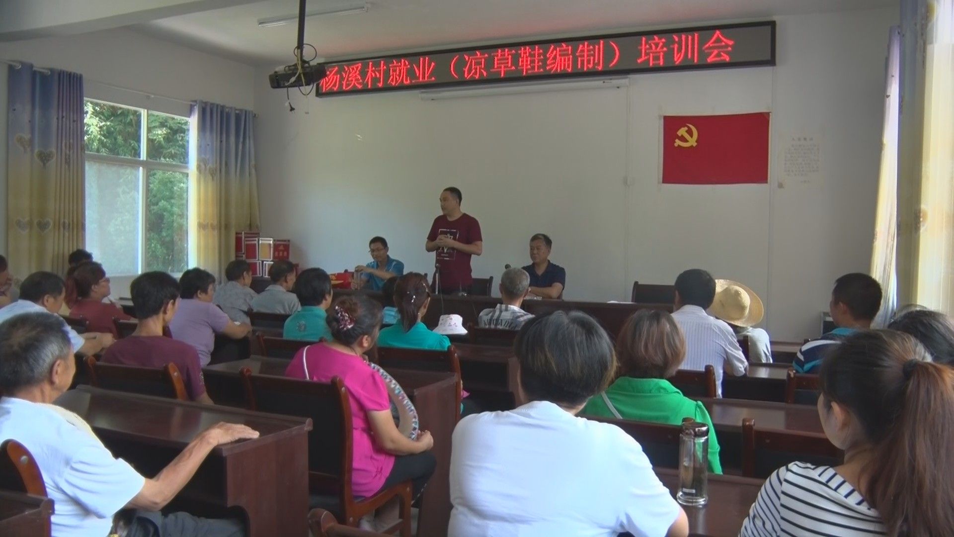 杨溪村是全县重点贫困村,建档立卡贫困户190户、521人。为帮助他们实现脱贫致富,在县驻村精准扶贫工作队县残联的引导下,乡农村电子商务中心与县、乡人社部门联合举办杨溪手工编制草鞋培训班。